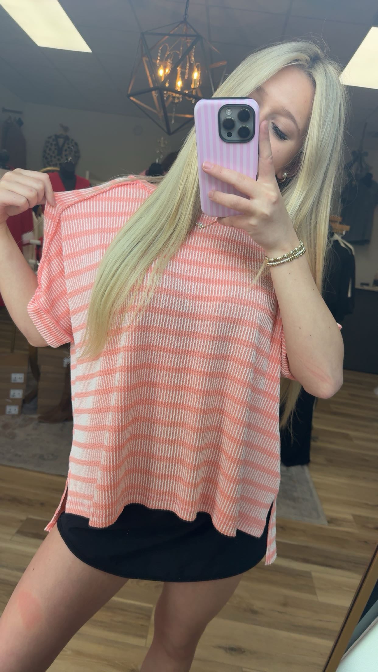 Coral Ribbed striped top